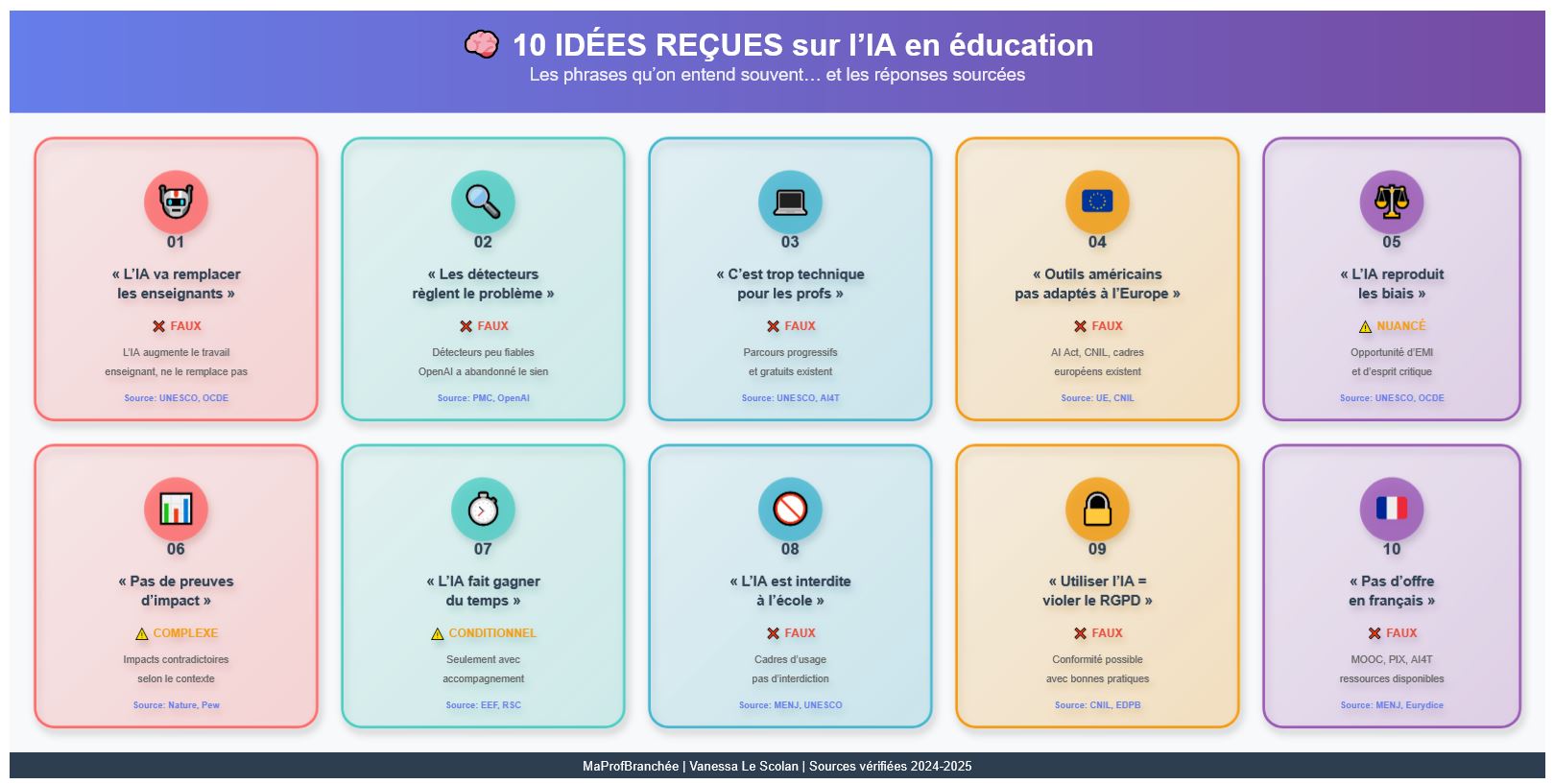 ❌ FAUX : Idées reçues clairement démenties par les sources • ⚠️ NUANCÉ/COMPLEXE : Réalité plus subtile nécessitant contextualisation • Sources vérifiées : Organismes de référence (UNESCO, OCDE, CNIL, EEF, etc.)