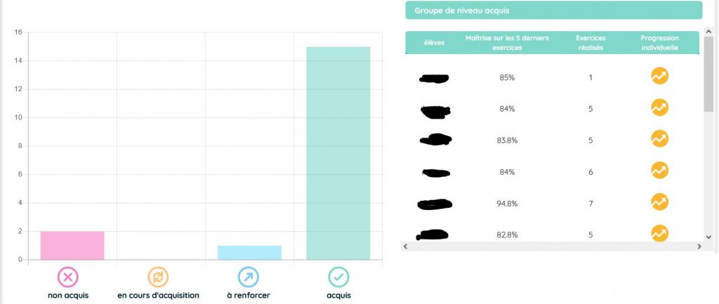 - les réussites et les blocages de chaque élève,